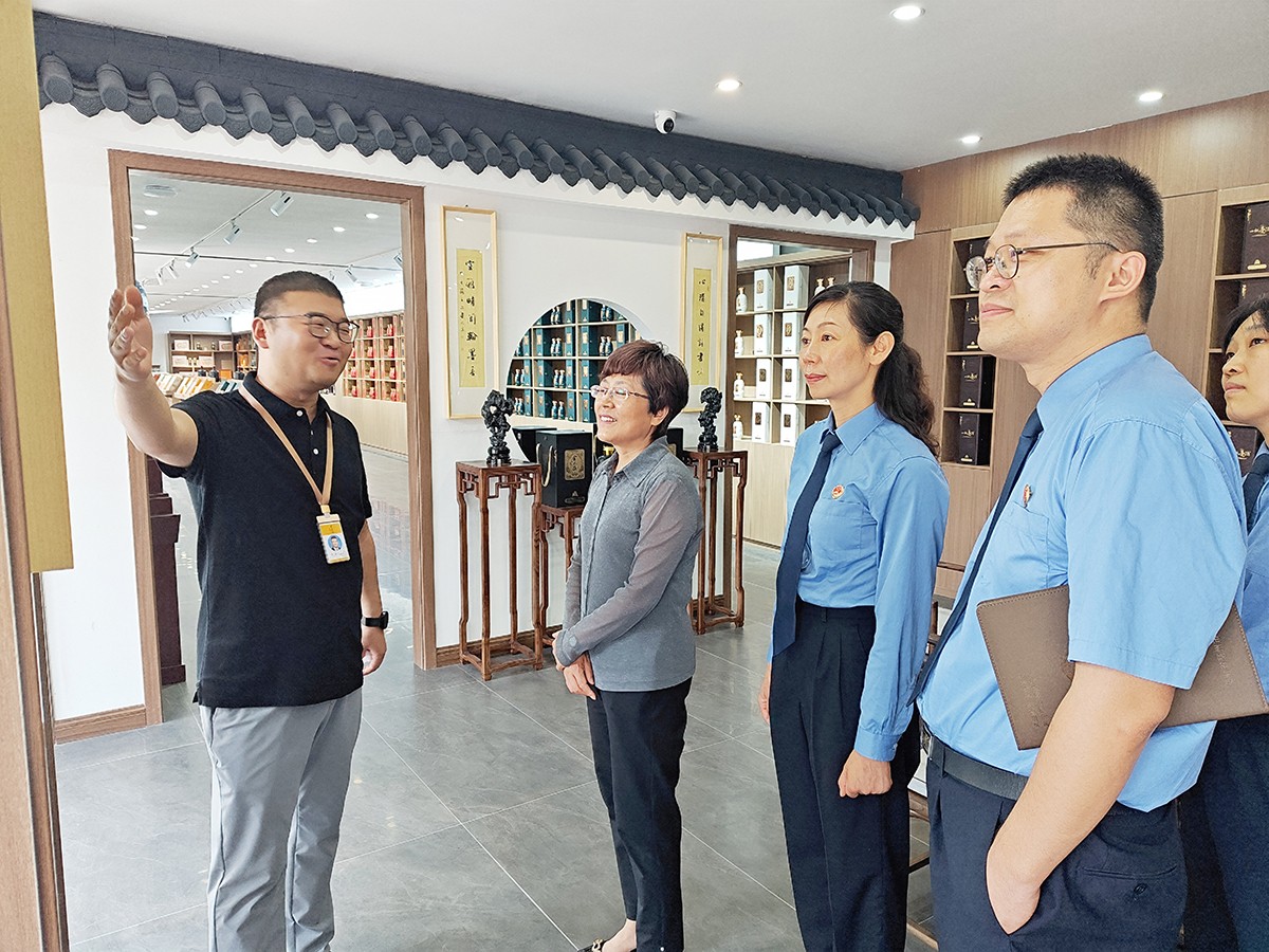 劉繼英一行在金不換集團黨委書記、總裁支濤的陪同下,實地查看了金不換白酒儲藏、銷售、生產、文化展示基地。聽取企業(yè)生產經營情況和發(fā)展規(guī)劃介紹。劉繼英檢察長對金不換多年來堅持守法誠信經營,創(chuàng)造良好生產經營環(huán)境,取得高質量發(fā)展給予高度贊揚。